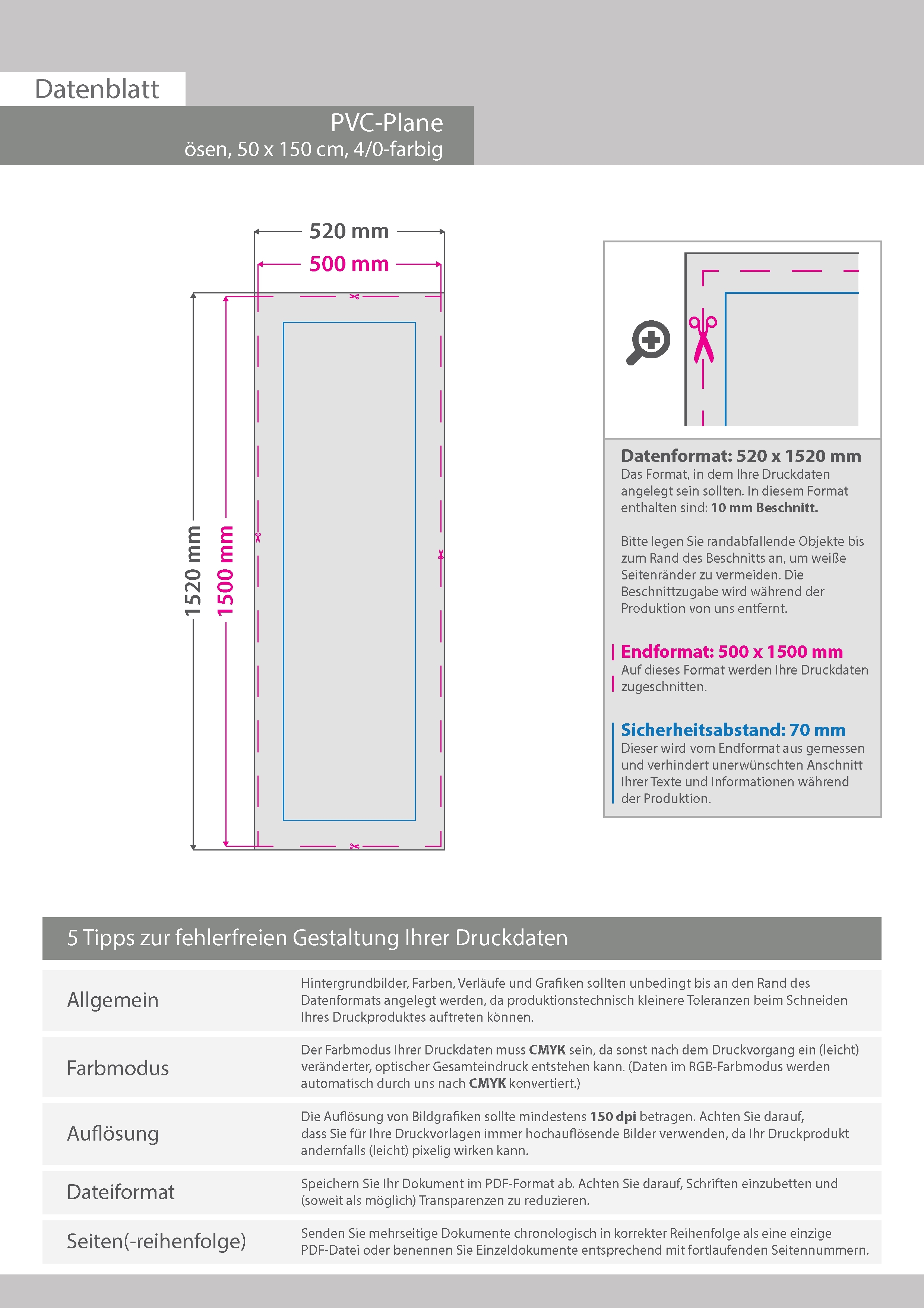 Hochwertige PVC-Plane 50 x 150 cm, 4/0-farbig bedruckt, Ösen im Abstand von 50 cm links und rechts