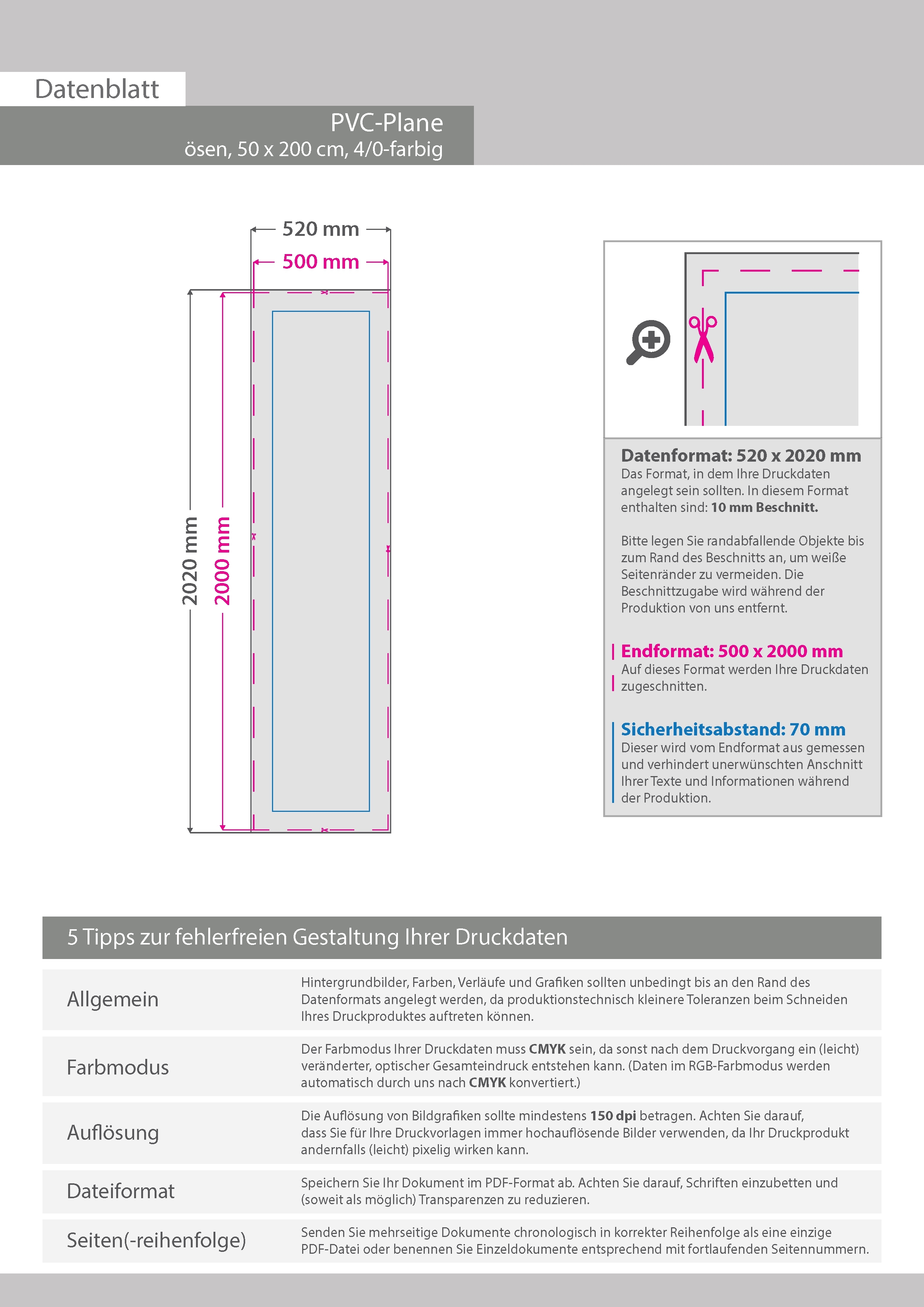 Hochwertige PVC-Plane 50 x 200 cm, 4/0-farbig bedruckt, Ösen im Abstand von 50 cm links und rechts